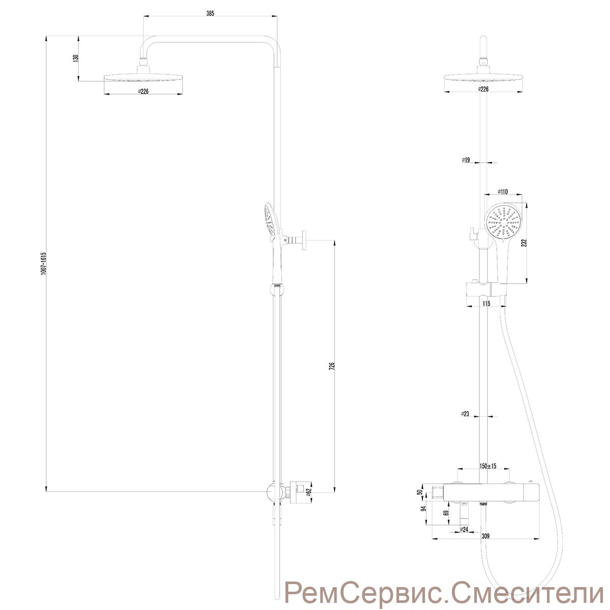 Размер верхнего душа, см | 22.6 |
