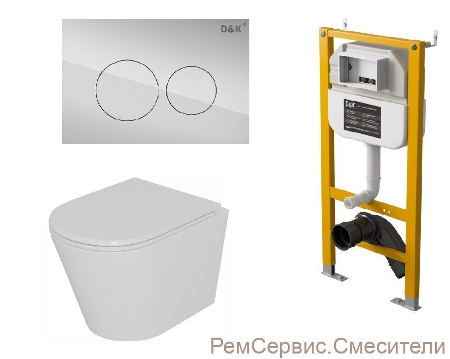 | Комплектация | Комплект Унитаз подвесной безободковый D&K Venice DT1026016, 515*355*365мм, сиденье микролифт, белый+Инсталляция рамная скрытого монтажа D&K DI8050127, 500*117*1270мм, для подвесного унитаза+Клавиша смыва D&K Bayern DB1529001.2, хром |