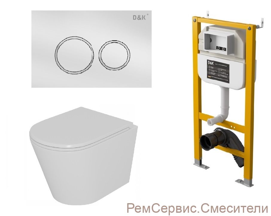 | Комплектация | Комплект Унитаз подвесной безободковый D&K Venice DT1026016, 515*355*365мм, сиденье микролифт, белый+Инсталляция рамная скрытого монтажа D&K DI8050127, 500*117*1270мм, для подвесного унитаза+Клавиша смыва D&K Bayern DB1529016, белый |