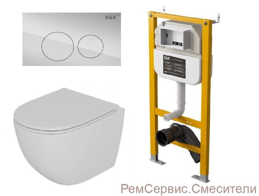 | Комплектация | Комплект Унитаз подвесной безободковый D&K Matrix DT1396016+Инсталляция рамная скрытого монтажа D&K DI8050127, 500*117*1270мм, для подвесного унитаза+Клавиша смыва D&K Bayern DB1529001.2, хром |
