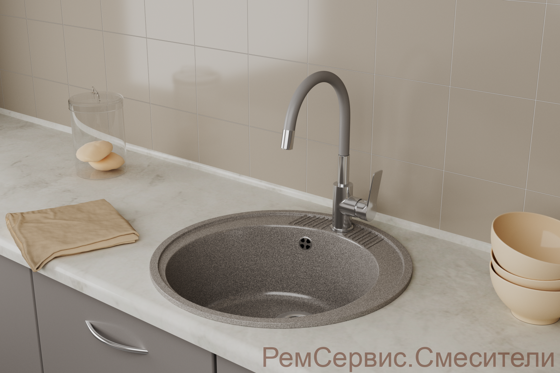 Смеситель для кухонной мойки с гибким изливом RUSH Siple (SI7335-60Grey)