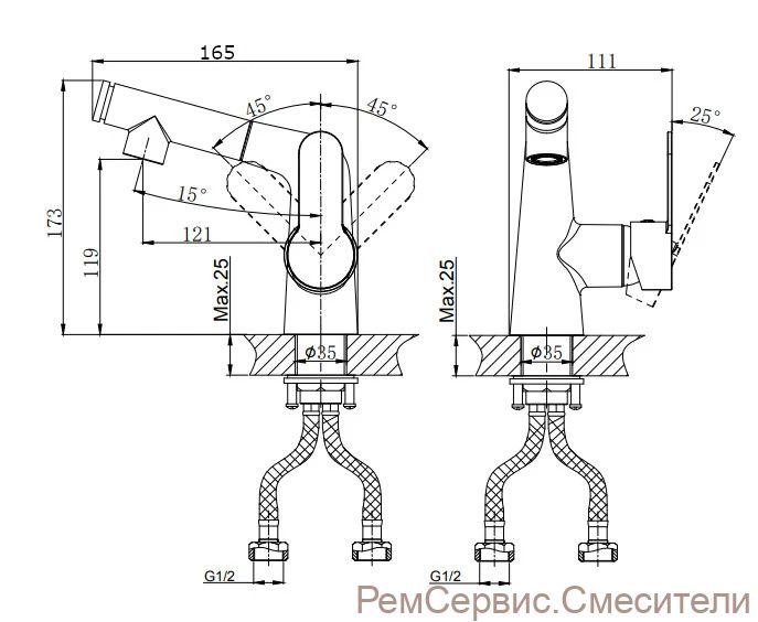 | Стандарт подводки | 1/2" |
