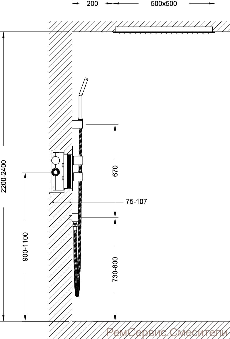 | Размер верхнего душа, см | 50 |